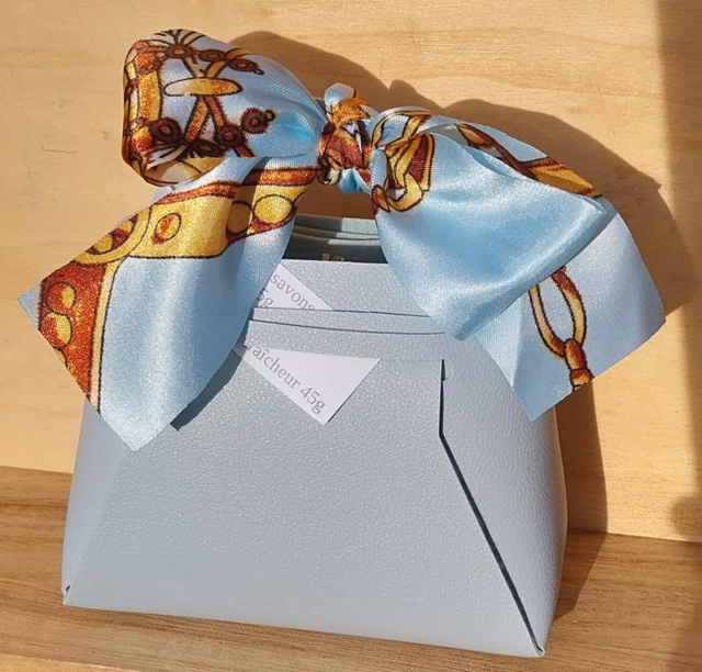 Tout cela dans un petit sac en simili cuir réutilisable!
